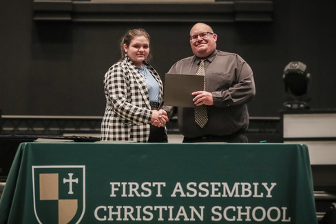 First Assembly Christian School Secondary faculty and staff, along with family and friends, honored students in sixth through twelfth grades during the annual Academic Honors Awards Night on Thursday, April 27, 2023, at 7 p.m. The evening is dedicated to recognizing and celebrating academic achievements of students in every area of study offered at FACS including: English, Foreign Languages, Mathematics, Social Studies, Fine Arts, Science and Journalism/Communications.